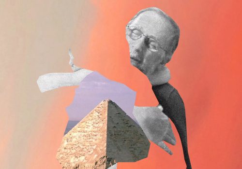 A surreal collage blends history with modern views, creating an artistic landscape where past and present converge in unexpected ways.