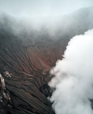 Discover a steaming volcanic crater amid misty mountain surroundings, where nature’s raw power and beauty collide in stunning fashion.