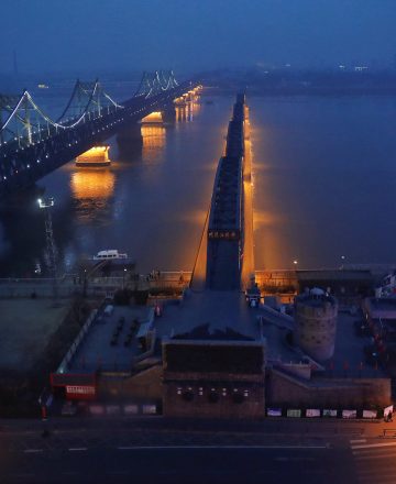 A breathtaking night view of a historic bridge, illuminated beautifully over the river, reflecting its rich history and charm.